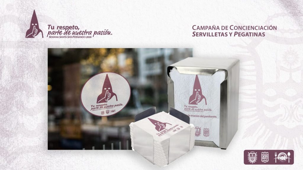 La campaña se articula en torno a un manifiesto, una identidad visual propia y un claim que aspira a convertirse en seña reconocible durante las próximas semanas. Todo el desarrollo gráfico se alinea con la estética del cartel de la Semana Santa de San Fernando 2026, reforzando así la coherencia del mensaje.