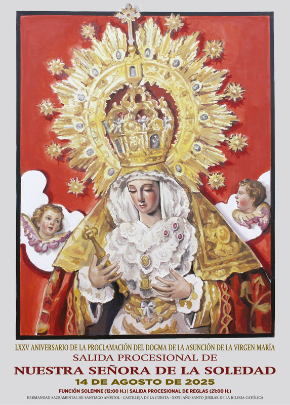 La localidad sevillana de Castilleja de la Cuesta vivirá la salida procesional de Nuestra Señora de la Soledad bajo palio, que tendrá lugar el próximo jueves 14 de agosto de 2025.